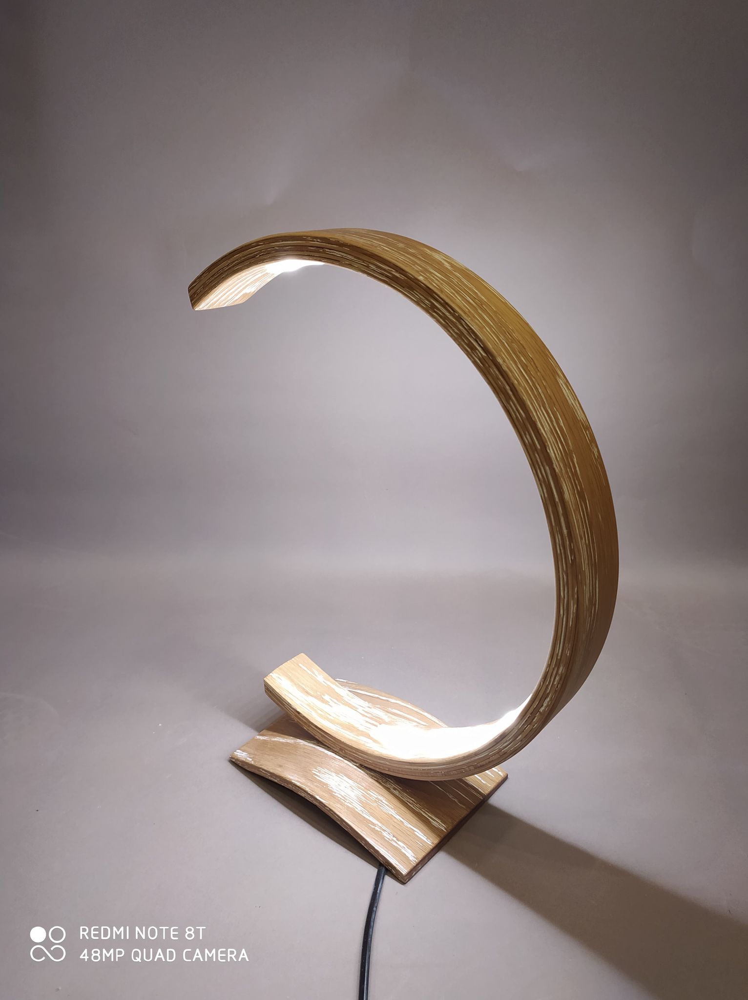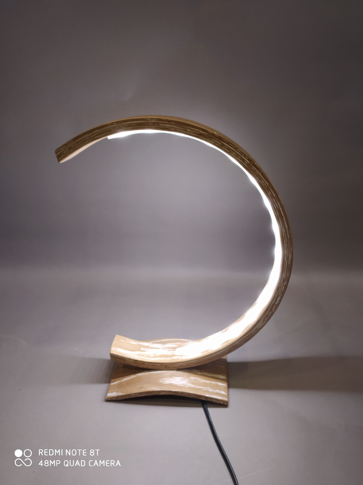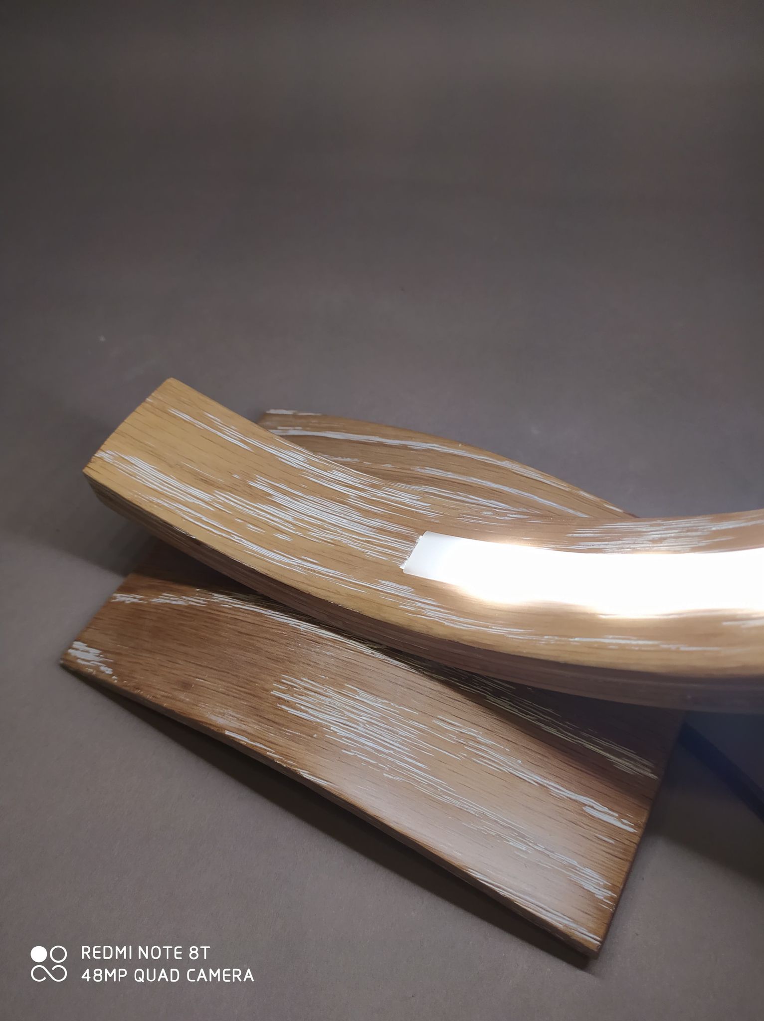 Επιτραπέζιο φωτιστικό υψηλής ποιότητας και design, από μασίφ ξύλο δρυς σε απόχρωση ντεκαπέ με λευκό πόρο και ταινία led 7.2 watt σε όλο το μήκος του.