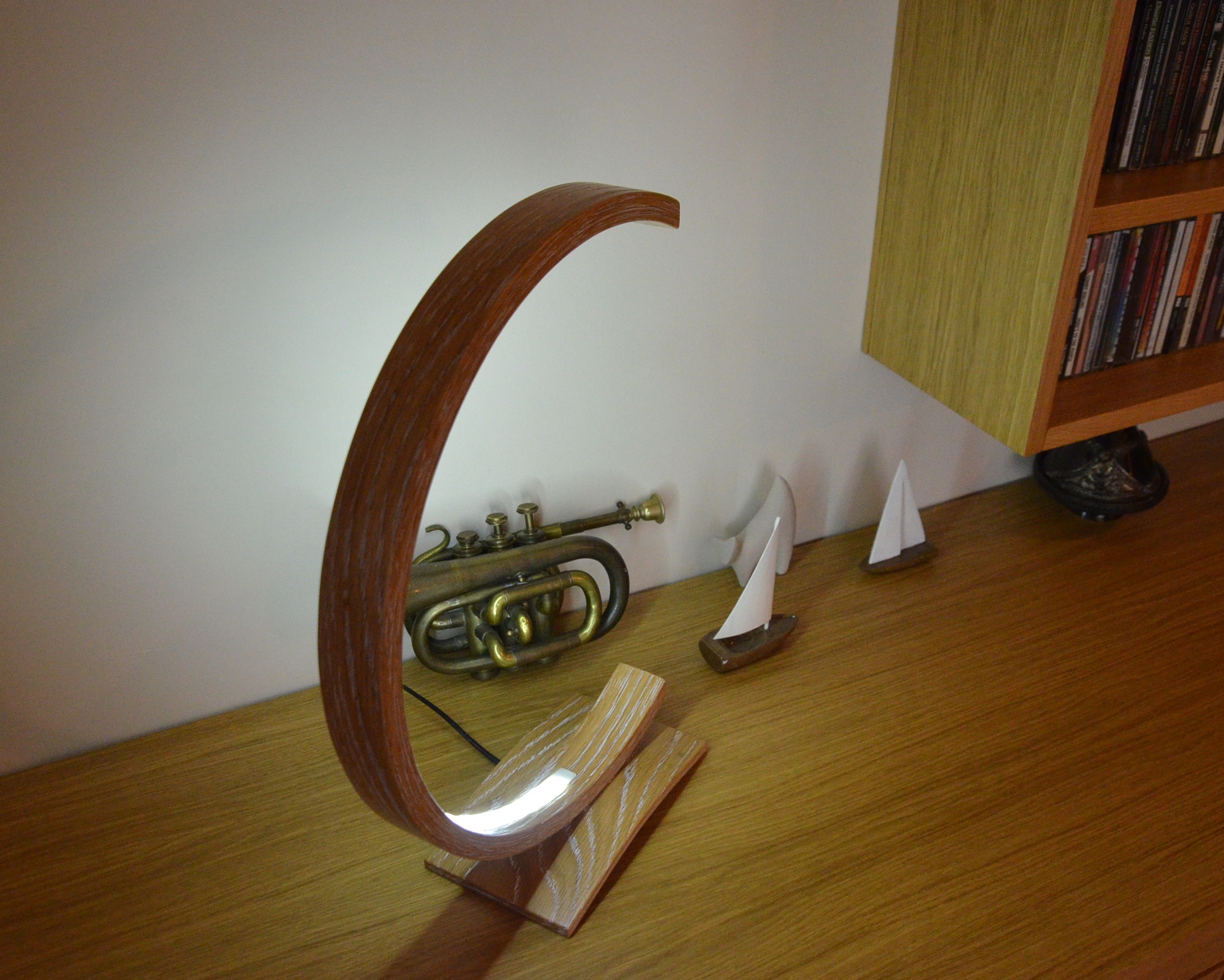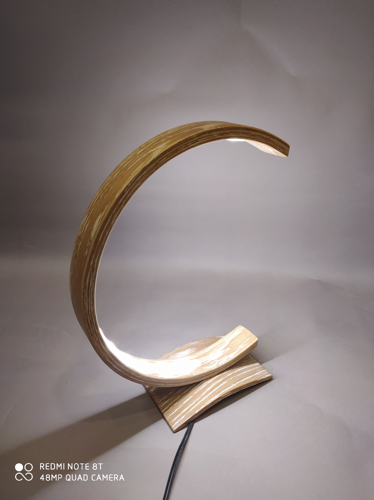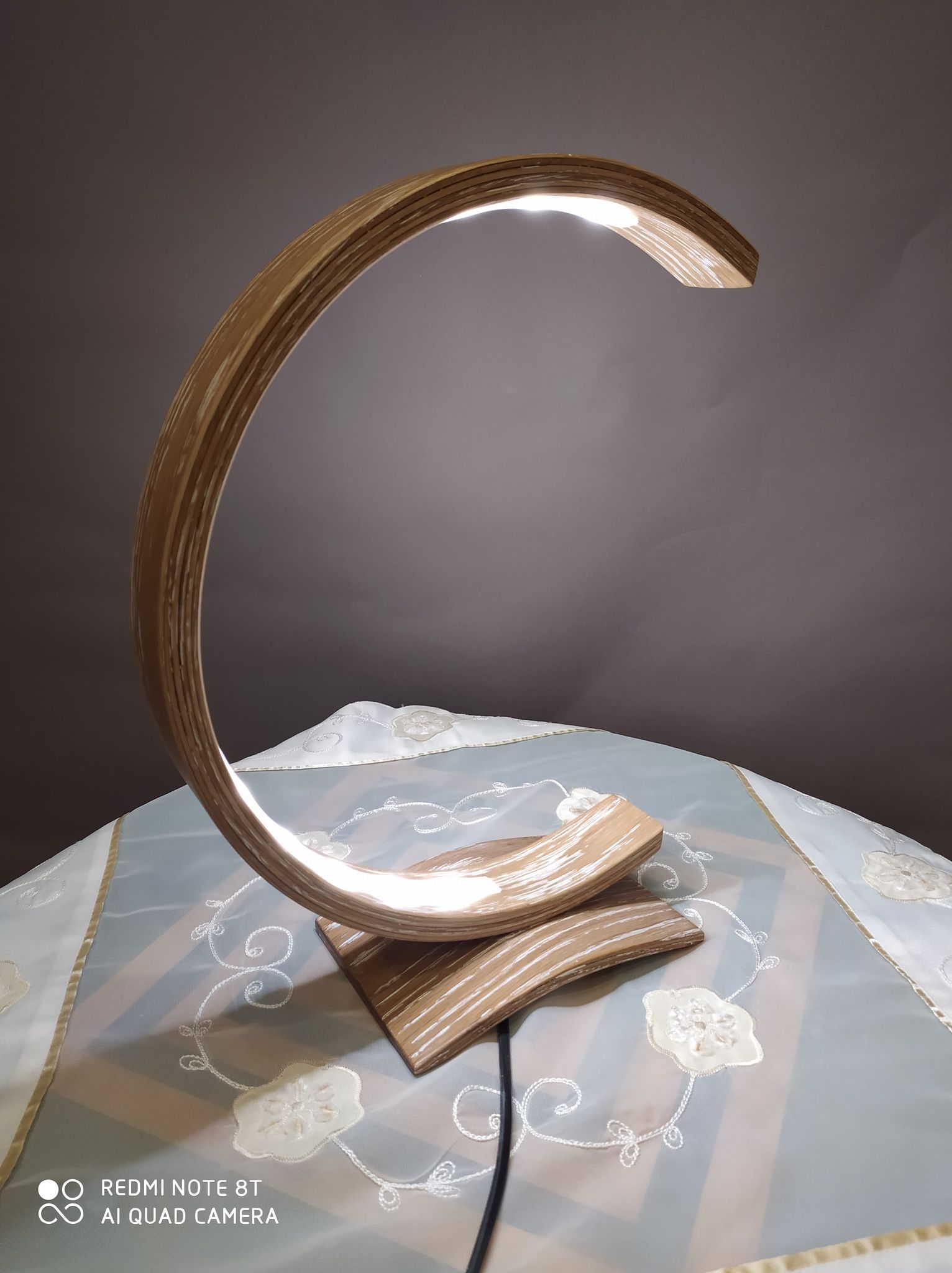 Επιτραπέζιο φωτιστικό υψηλής ποιότητας και design, από μασίφ ξύλο δρυς σε απόχρωση ντεκαπέ με λευκό πόρο και ταινία led 7.2 watt σε όλο το μήκος του.