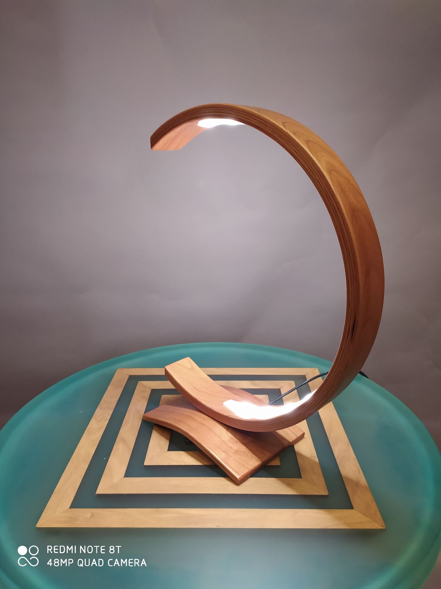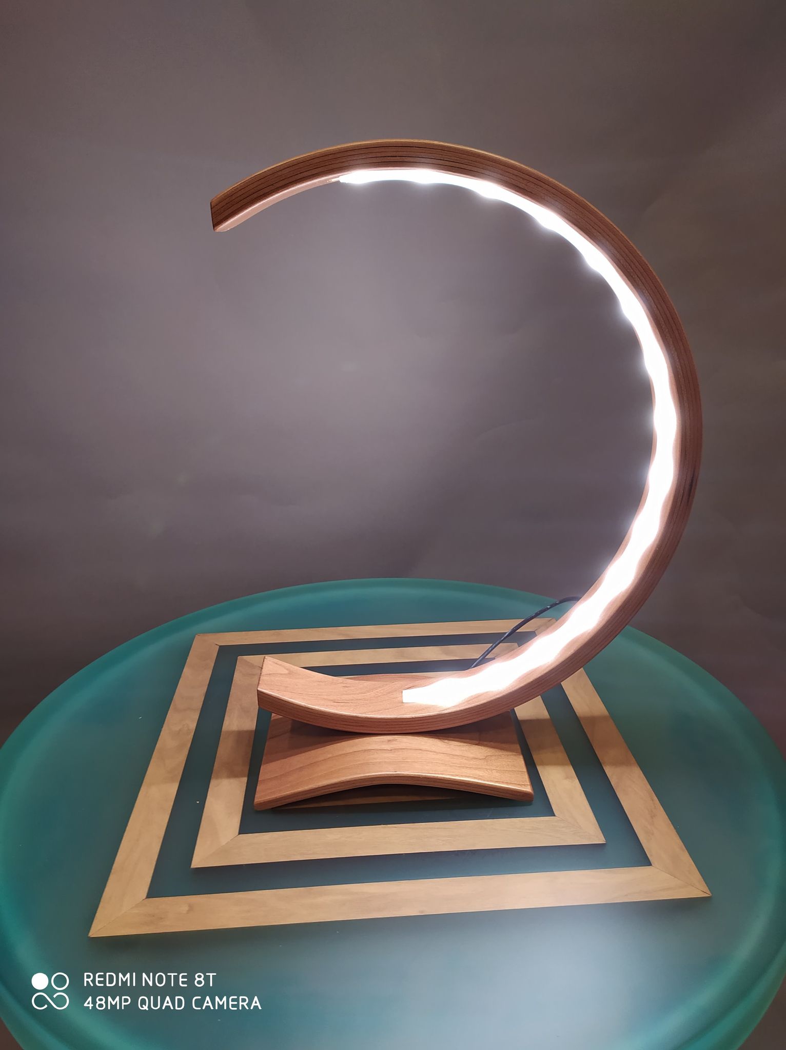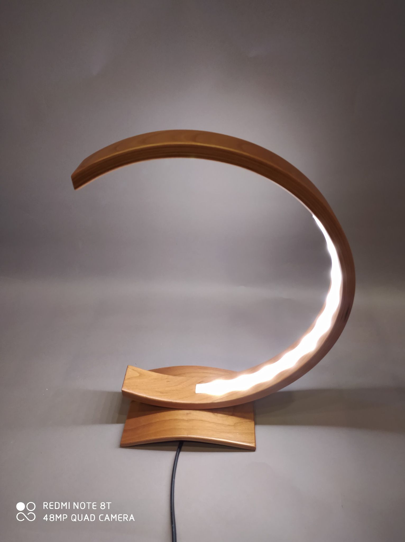 Επιτραπέζιο φωτιστικό υψηλής ποιότητας και design, από μασίφ ξύλο κερασιάς σε φυσική απόχρωση και ταινία led 7.2 watt σε όλο το μήκος του. Διαστάσεις: 33cm x 25cm
