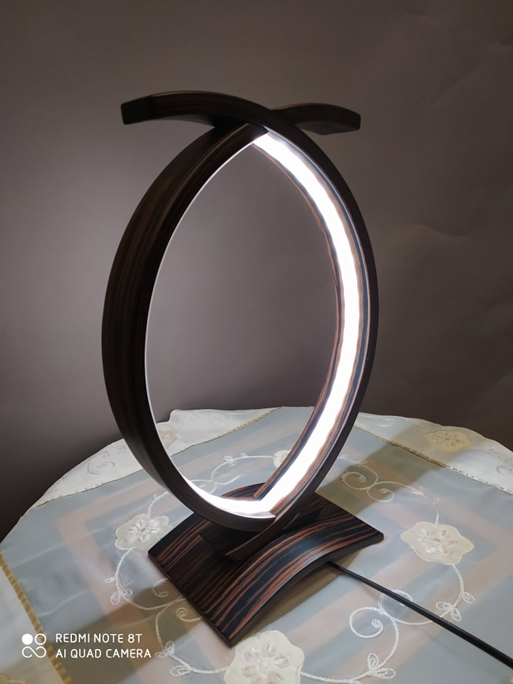 Επιτραπέζιο φωτιστικό υψηλής αισθητικής και ποιότητας από έβενο με ταινία led 4.8 watt σε όλο το μήκος του. Διαστάσεις: 35cm x 23cm
