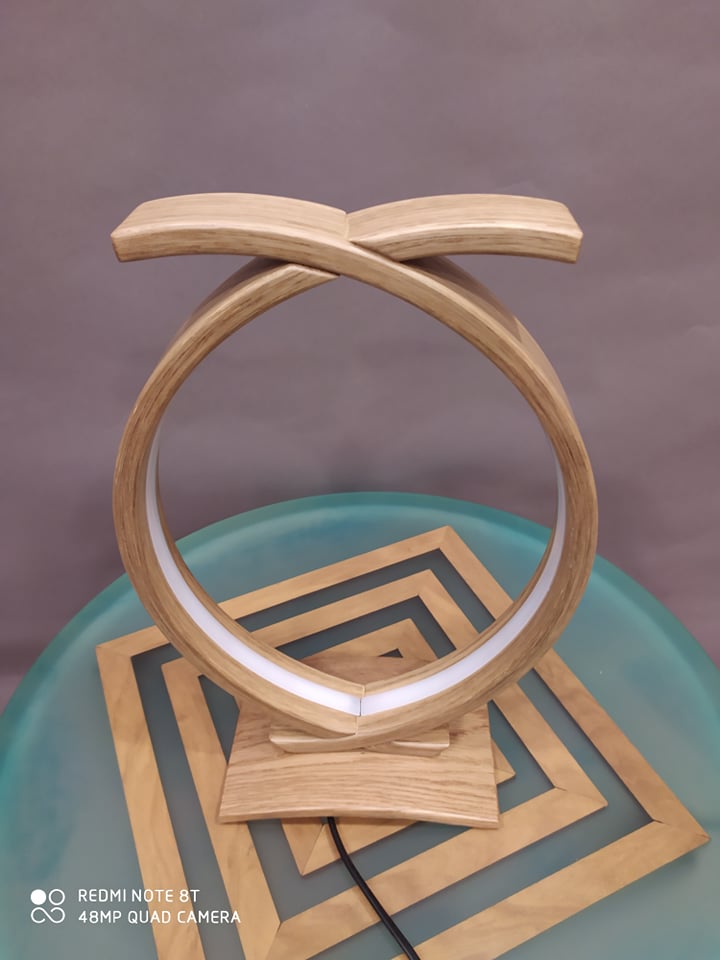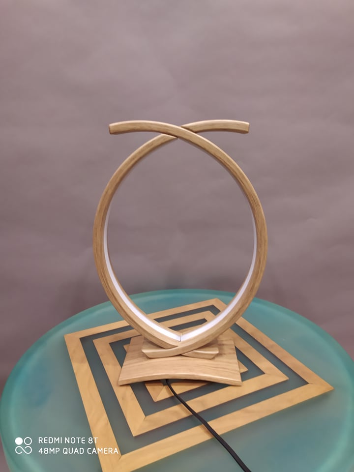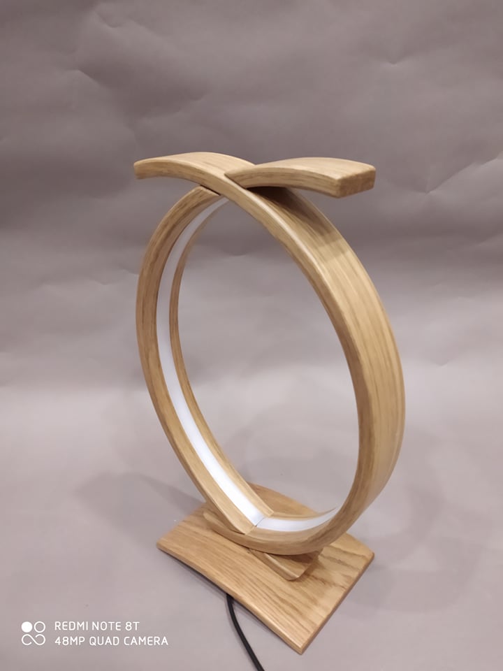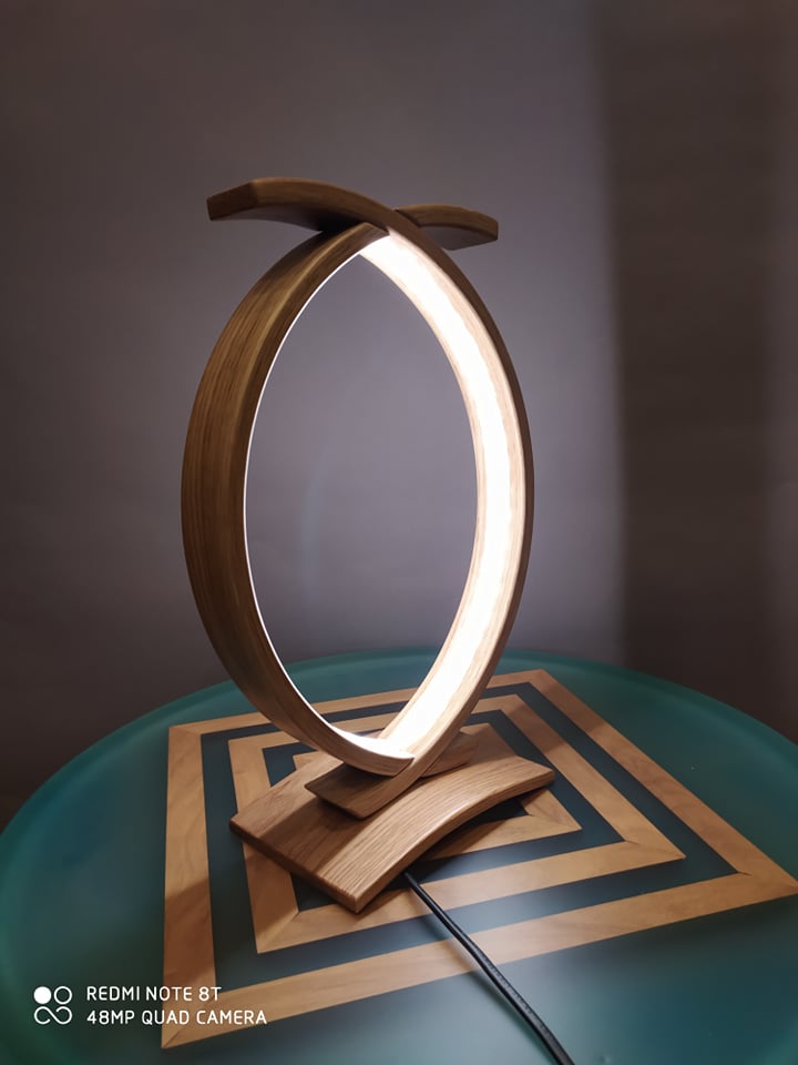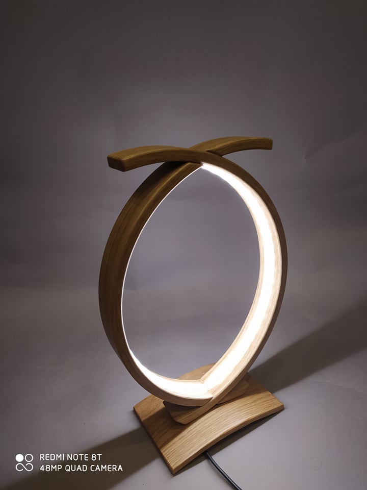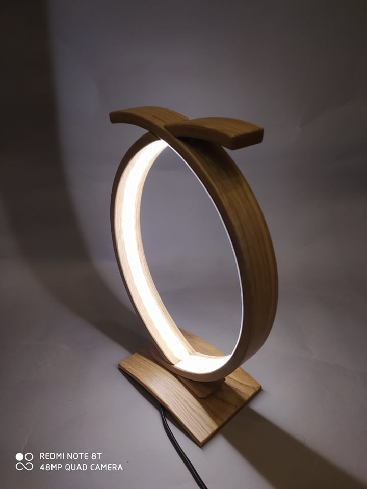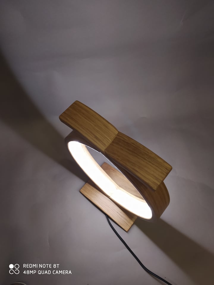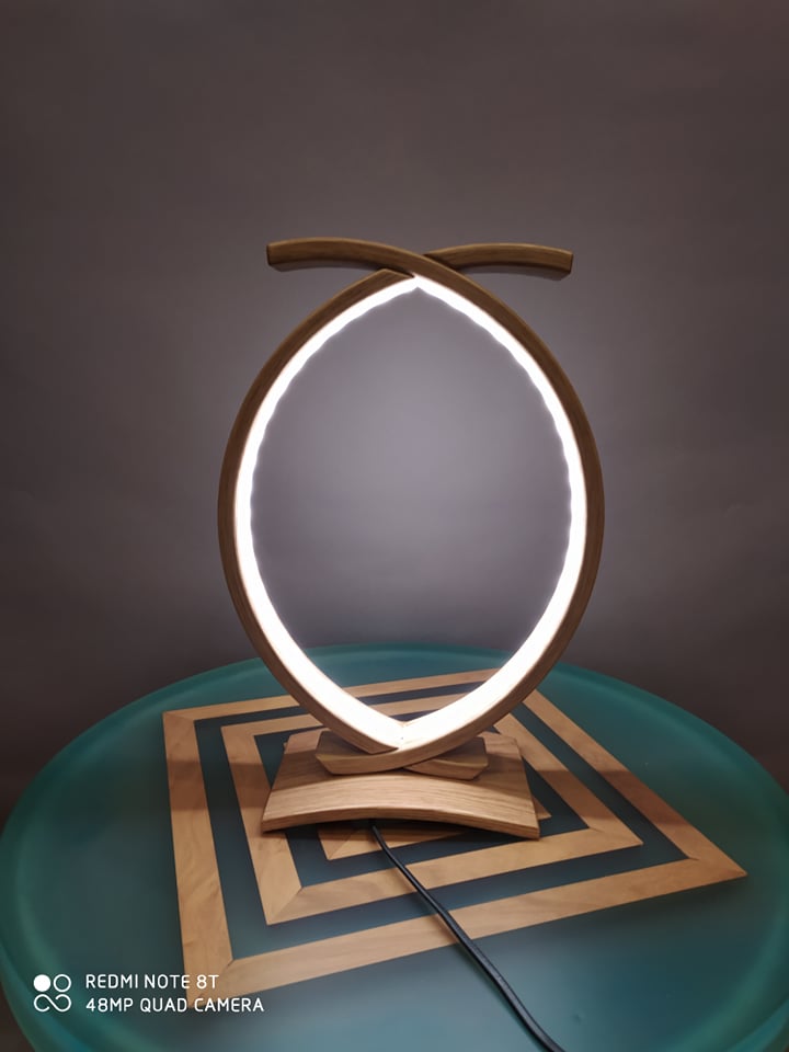 Επιτραπέζιο φωτιστικό υψηλής αισθητικής και ποιότητας από μασίφ δρυς με ταινία led 4.8 watt σε όλο το μήκος του. Διαστάσεις: 35cm x 23cm