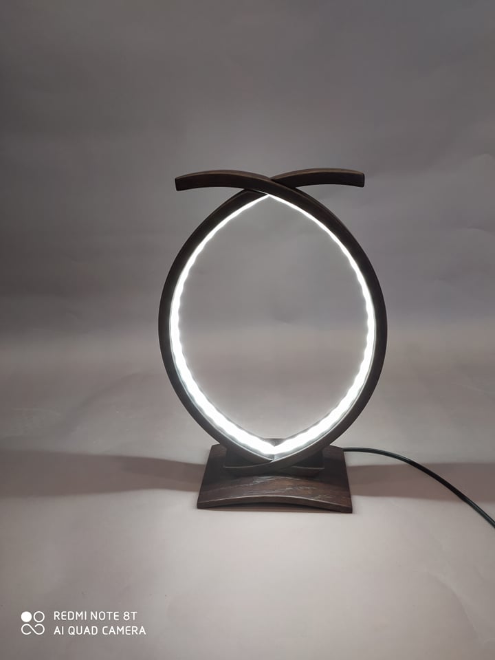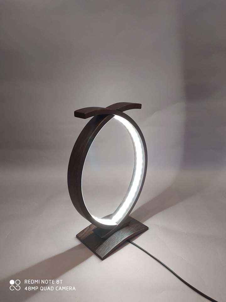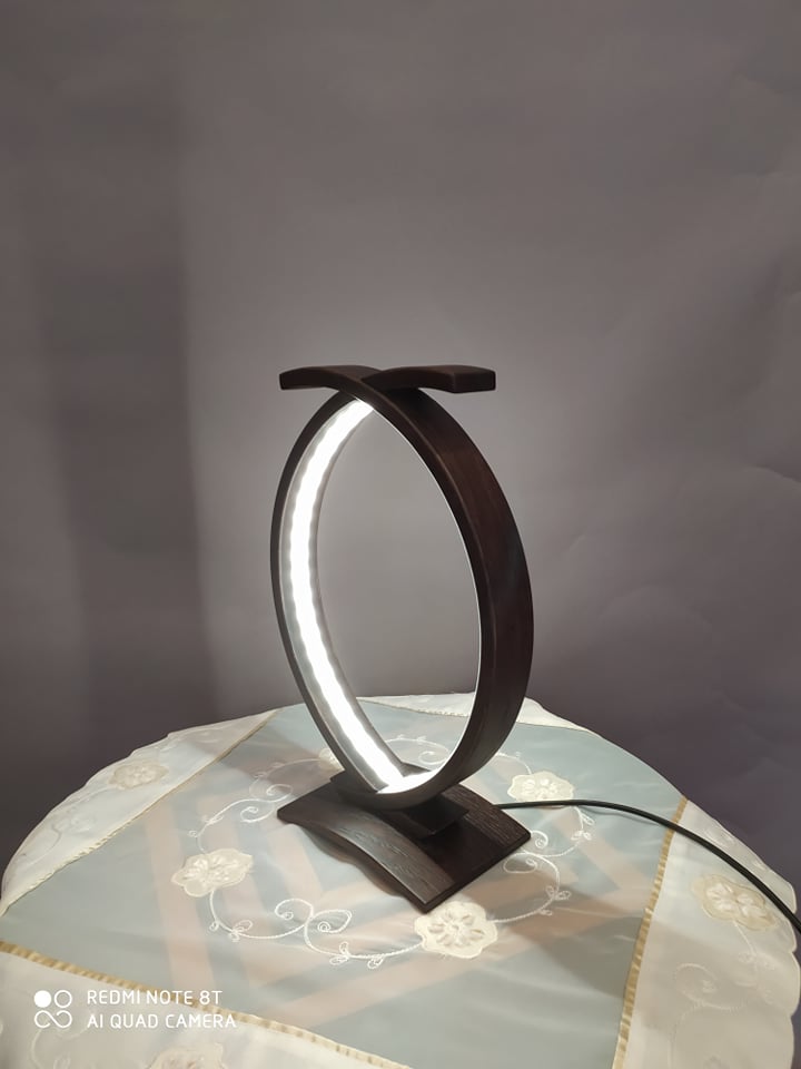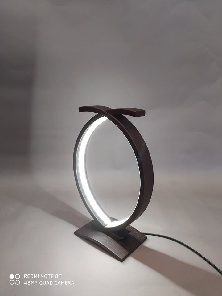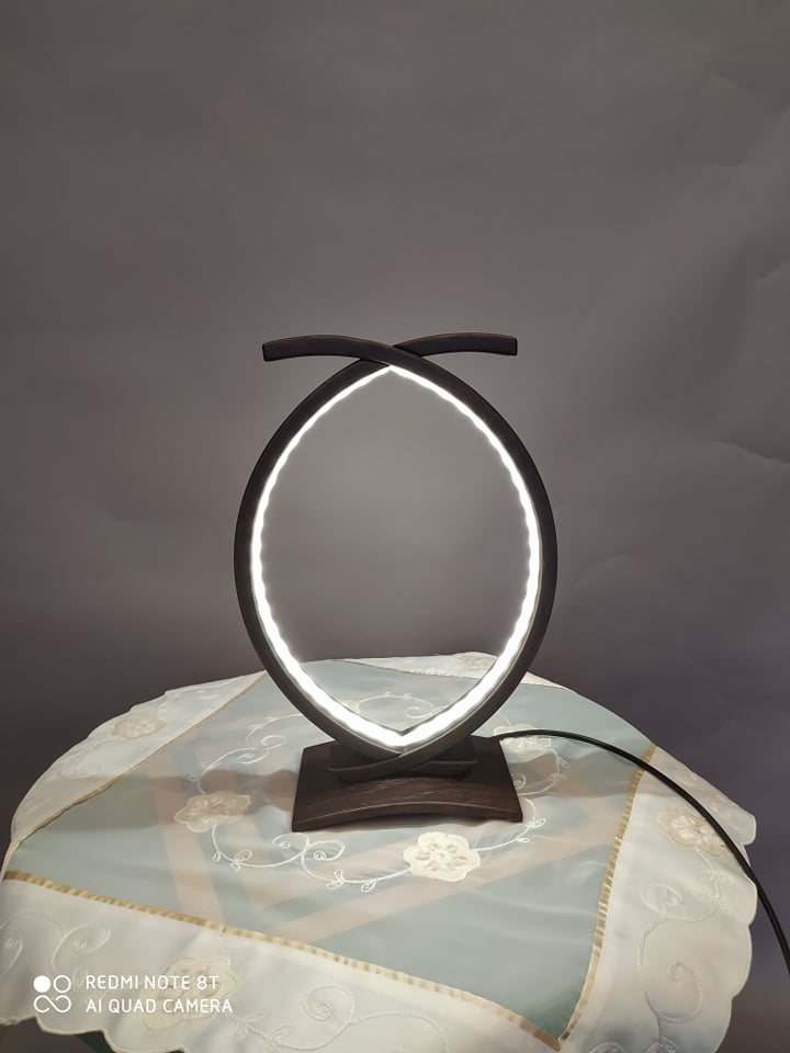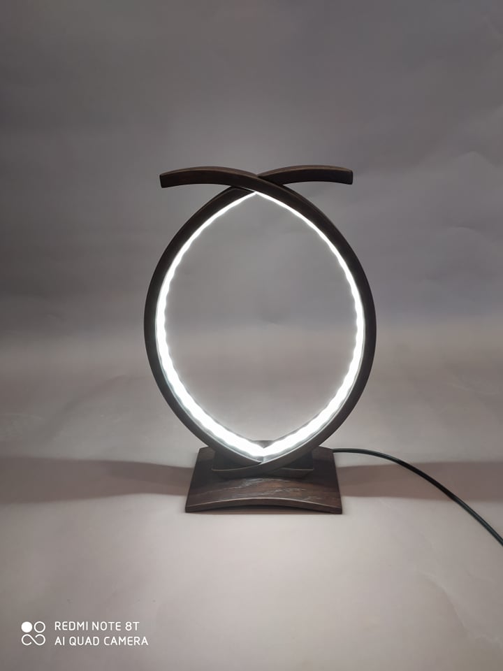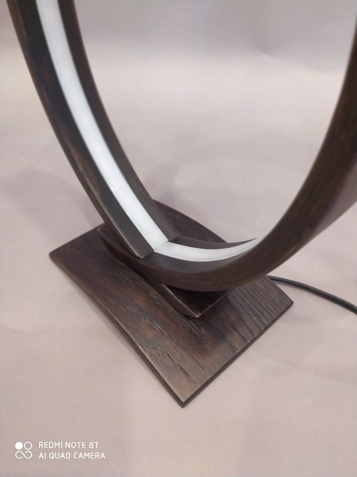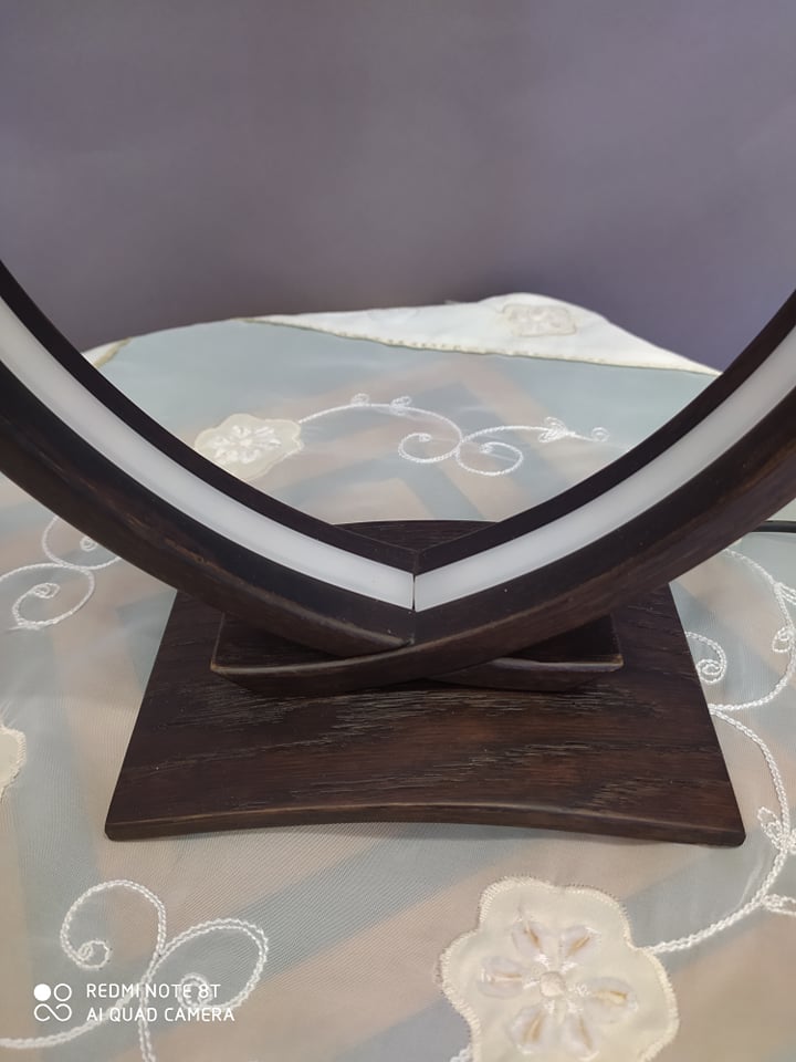 Επιτραπέζιο φωτιστικό υψηλής αισθητικής και ποιότητας από μασίφ δρυς σε βέγκε απόχρωση με ταινία led 4.8 watt σε όλο το μήκος του. Διαστάσεις: 35cm x 23cm