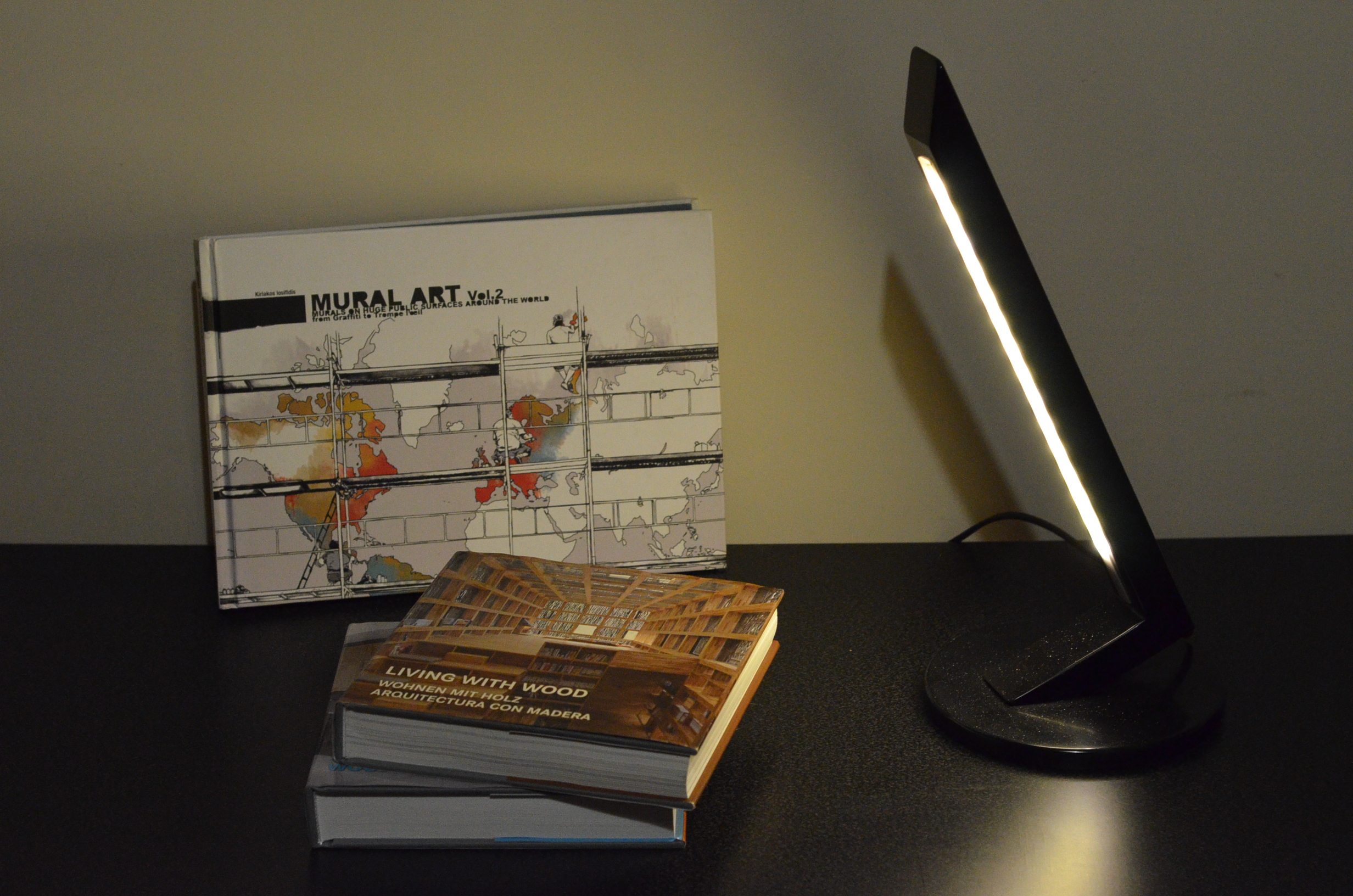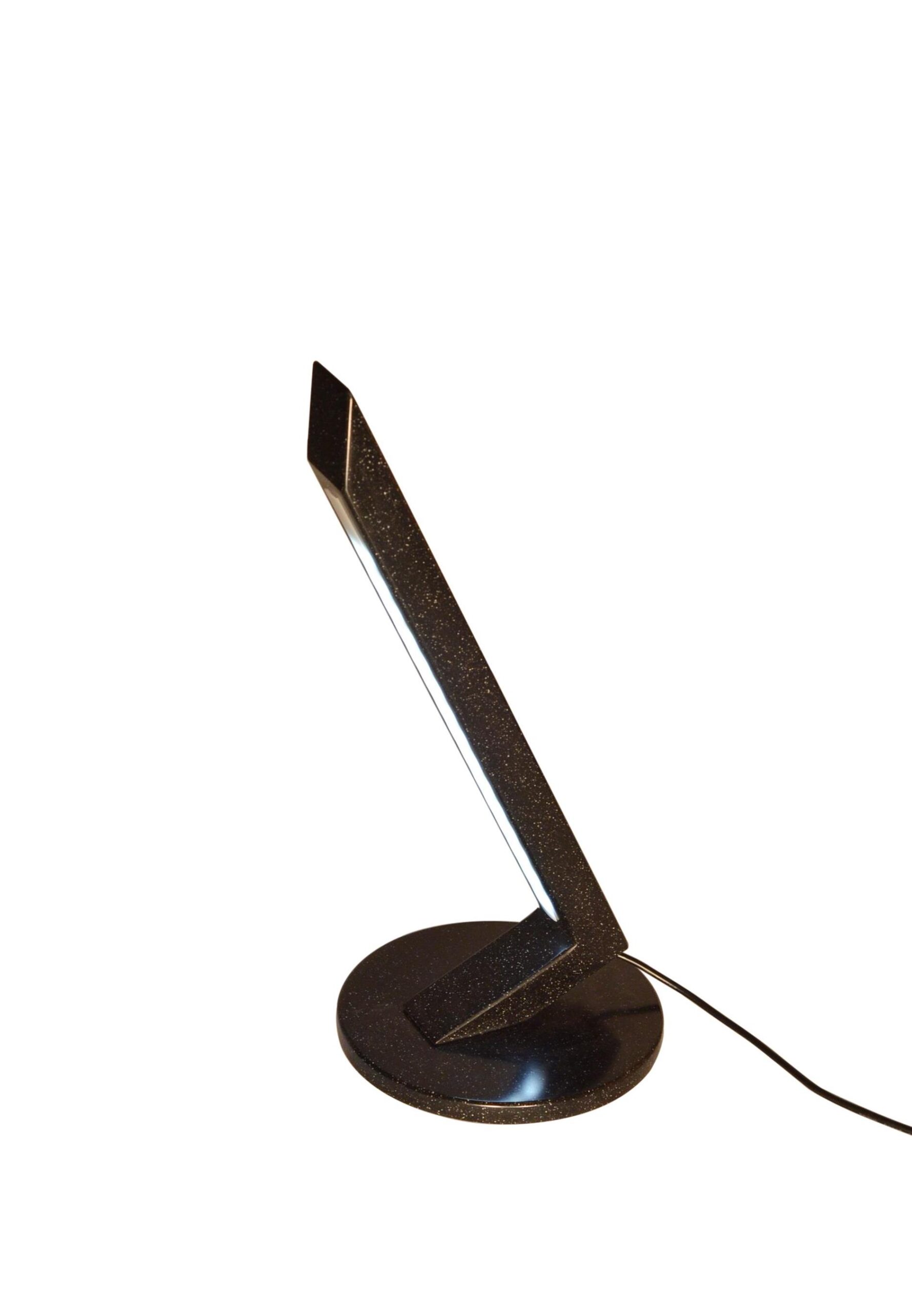 Επιτραπέζιο φωτιστικό minimal αισθητικής και γραμμικής σχεδίασης, κατάλληλο για το γραφείο ή το κομοδίνο, κατασκευασμένο από Staron Solid Surface σε απόχρωση Black Galaxy με ταινία led 4.8 watt warm white.