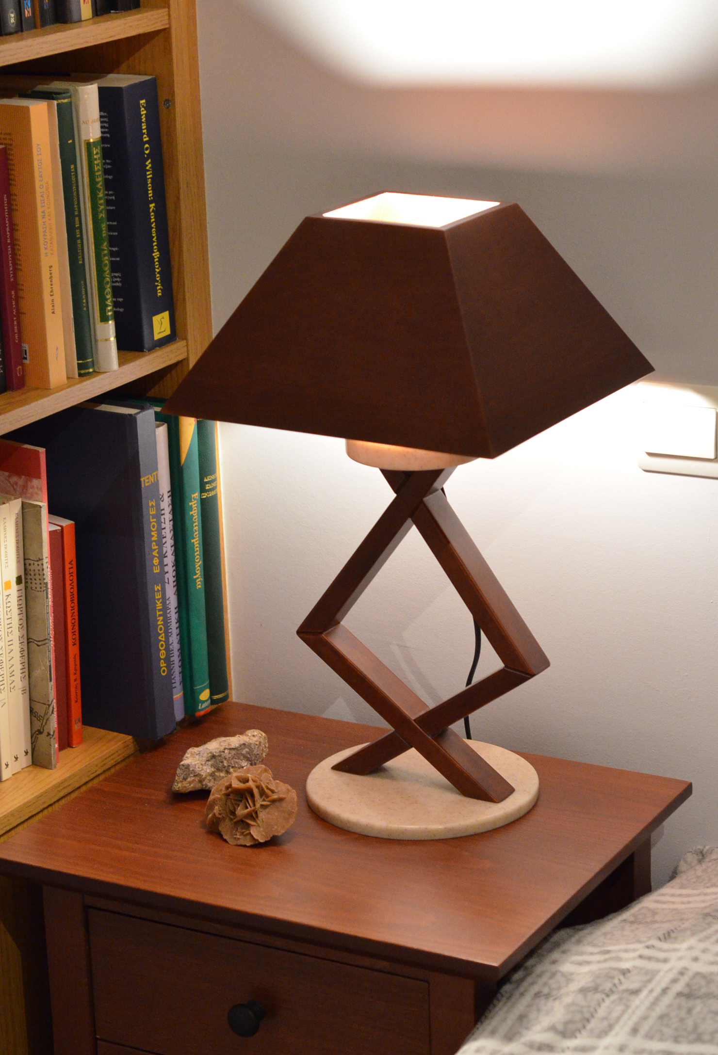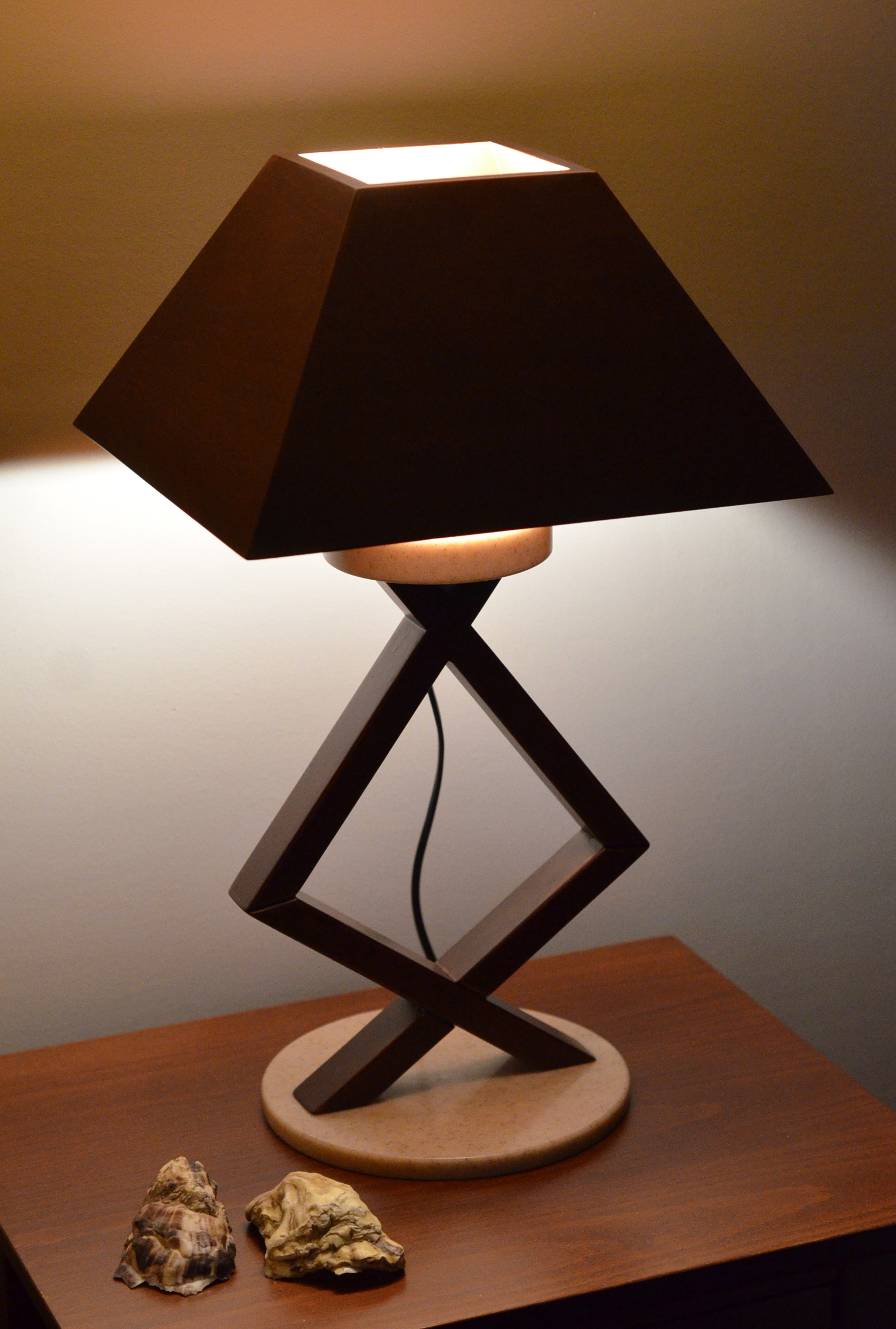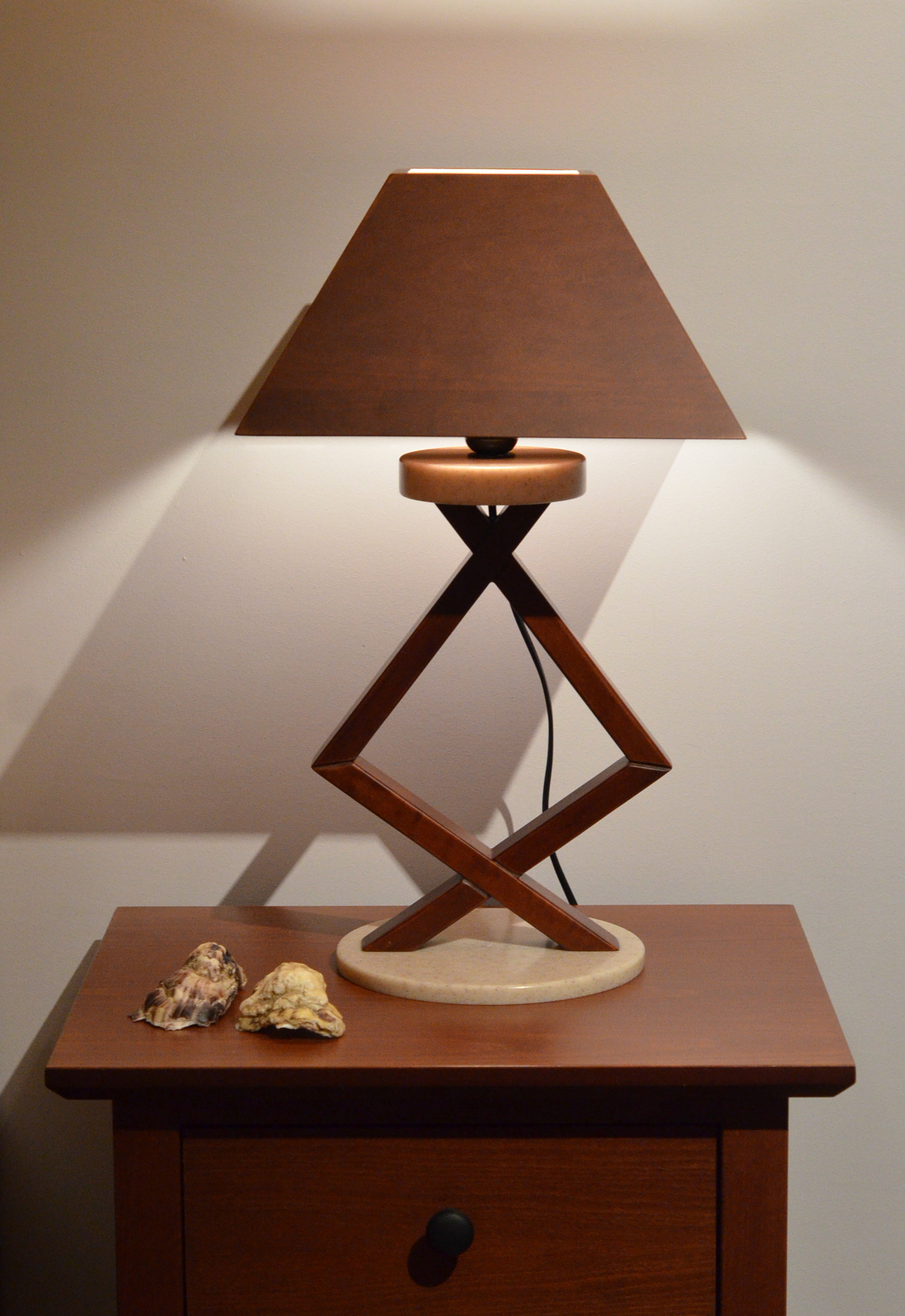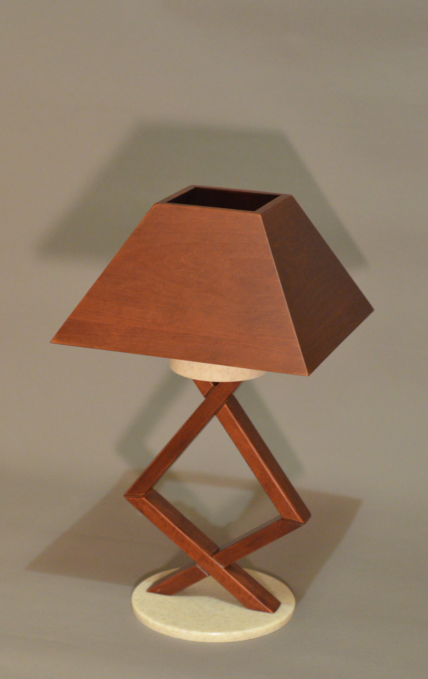 Επιτραπέζιο φωτιστικό από ξύλο μασίφ κερασιά με βάση από Franke Solid surface και καπέλο από κερασιά με τελική επίστρωση σατινέ βερνικιού. Το ξύλο σε συνδυασμό με το βωξίτη (solid surface) αποτελούν το ιδανικό συνδυασμό του μοντέρνου με το κλασικό σε ενα φωτιστικό που ταιριάζει ιδανικά είτε στο σαλόνι και το χωλ είτε στο υπνοδωμάτιο.